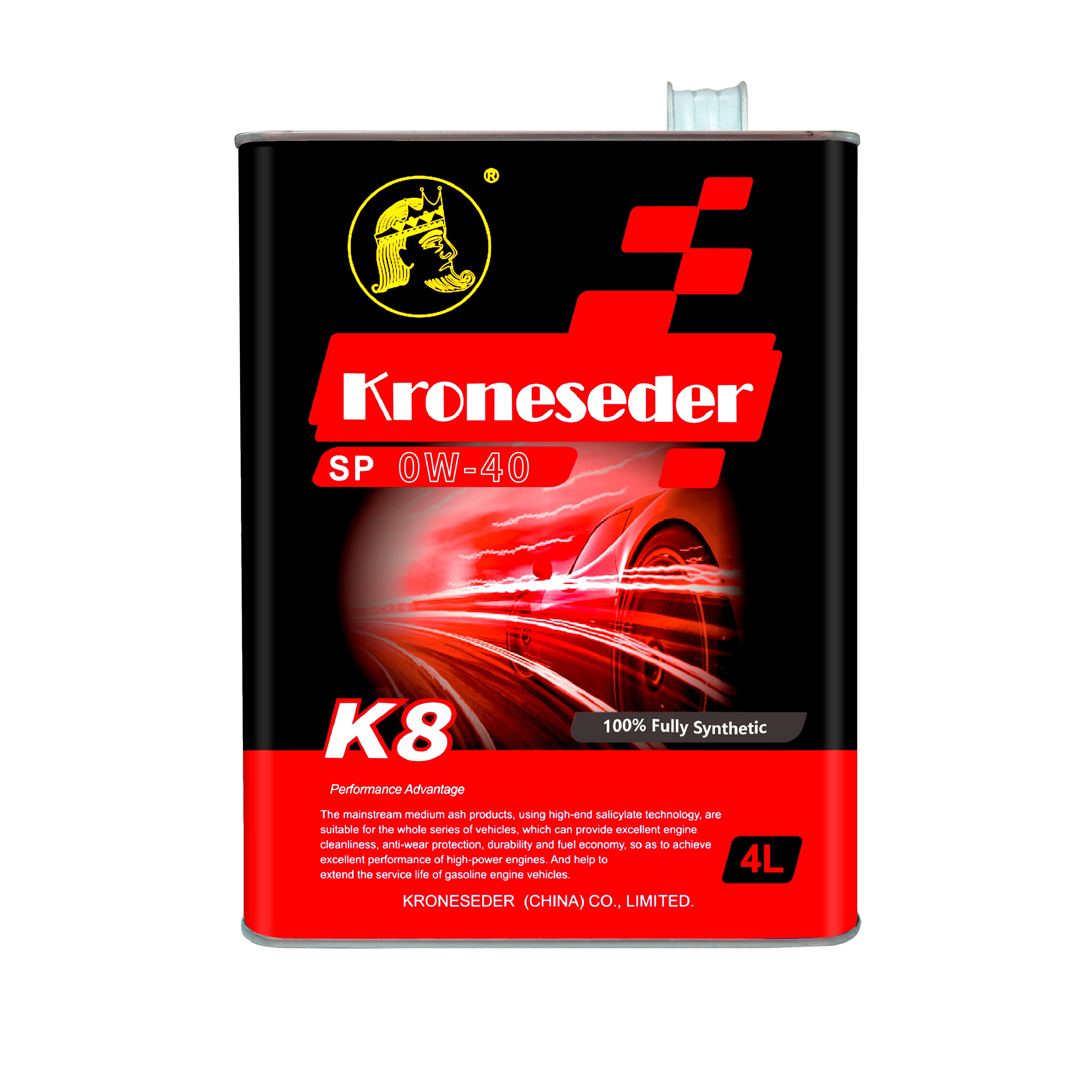 K8系列全合成机油采用先进的全合成基础油及高性能进口添加剂调配而成,高温或低温机油油膜强度大而坚韧。机油性能明显提升,具有延长换油期、节能环保等功能,适用于现代高级豪华轿车的汽油发动机、涡轮增压的引擎,包括欧V1低排放标准和气体燃料发动机。对发动机提供优良的保护,达到高品质的驾驶体验。