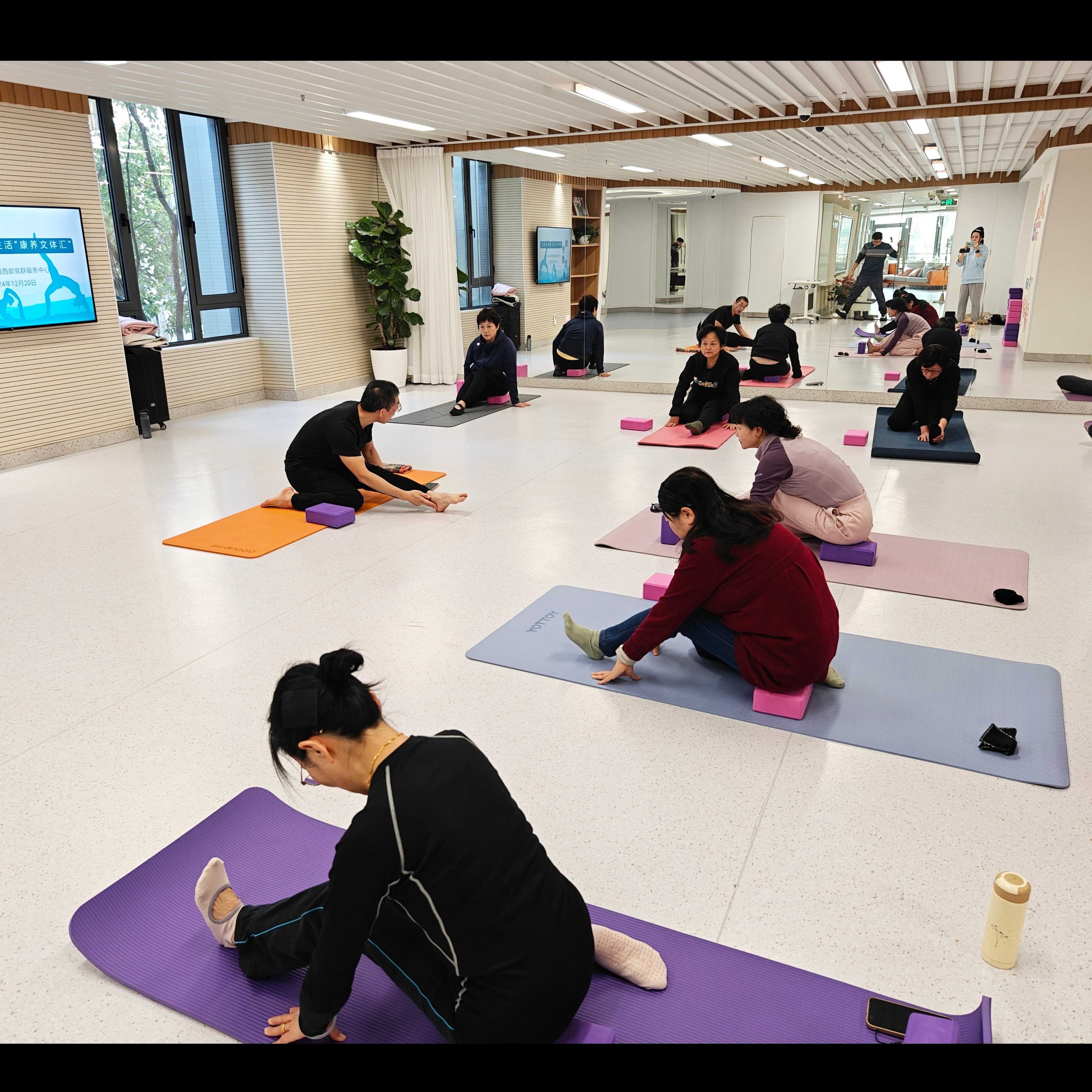 课程涵盖基础呼吸法、理疗体式及冥想放松,结合筋膜放松与低强度拉伸,渐进提升柔韧性及平衡力。